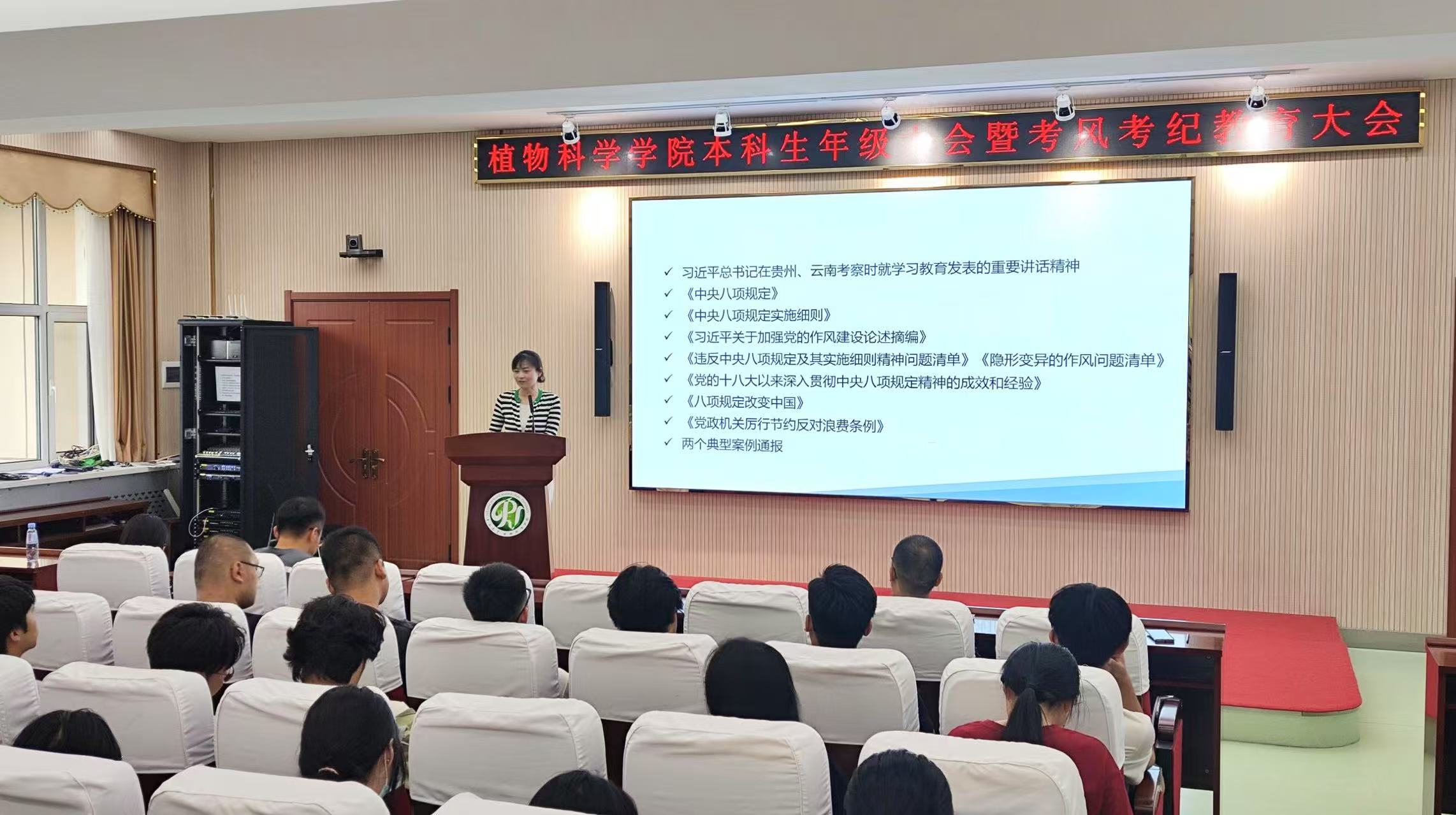 为全面落实立德树人根本任务,进一步强化学生日常管理,严肃考风考纪,营造风清气正、严谨笃学的优良学风院风,新葡的京集团350vip8888官网分别于6月13日、6月16日组织召开本科生年级大会暨考风考纪教育大会。学院党委副书记郑蕊,主管本科教学工作副院长吴涛,年级辅导员高梦玉、冯振宇,及全体本科生参加会议。